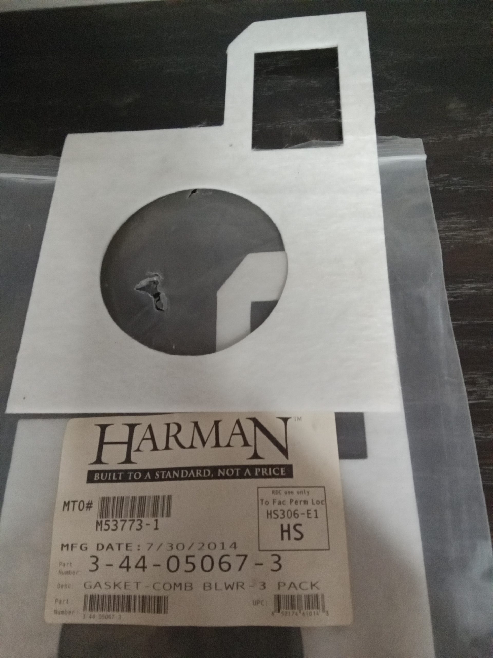 Combustion blower gasket for Harman Invincible T and Pellet Pro II