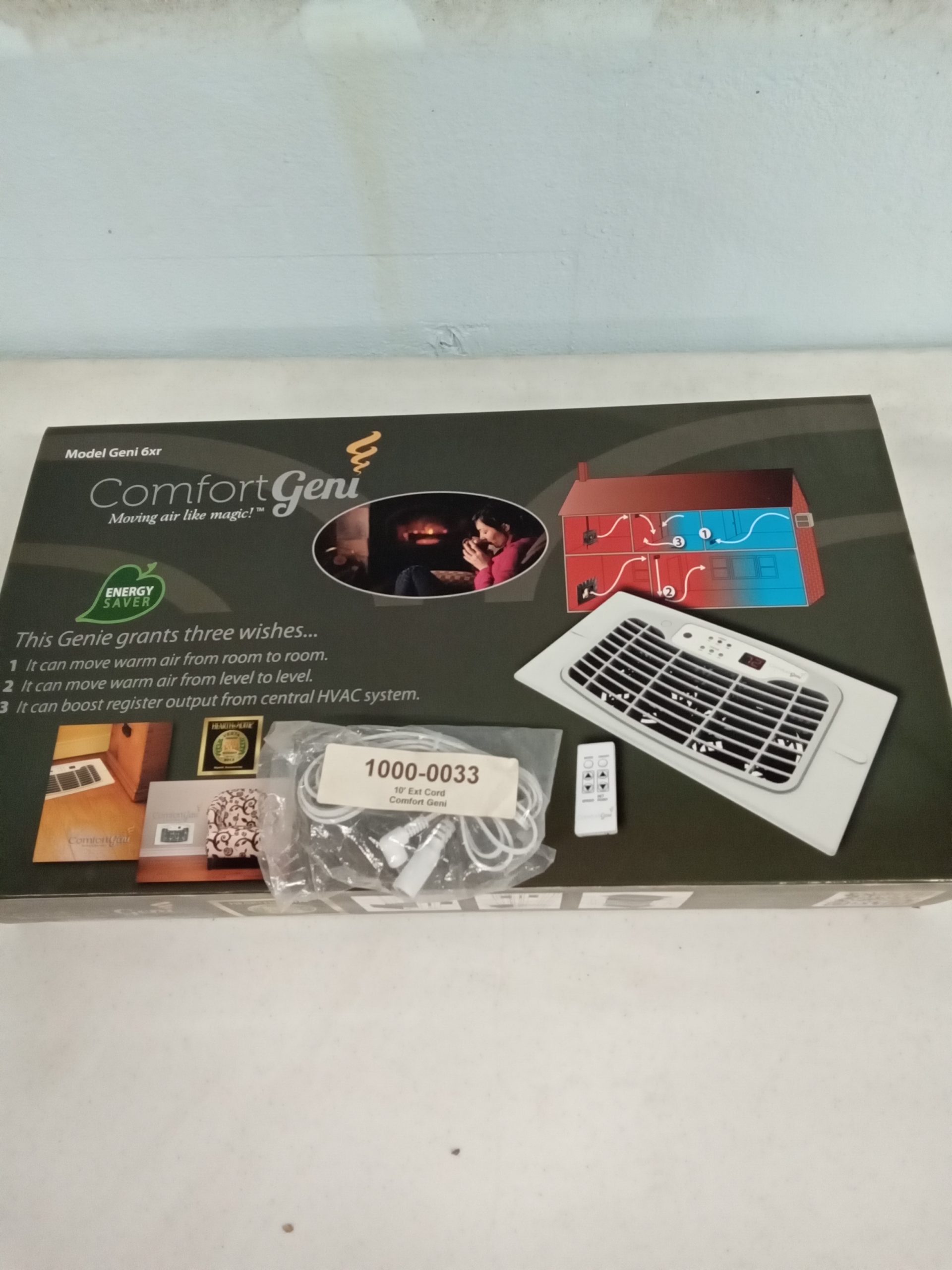Moves heated air from stove room to the next room though a wall or ceiling. Comes with a remote and 10′ cord. Fits in a 6″x10″ or 6×12″ register type opening.
